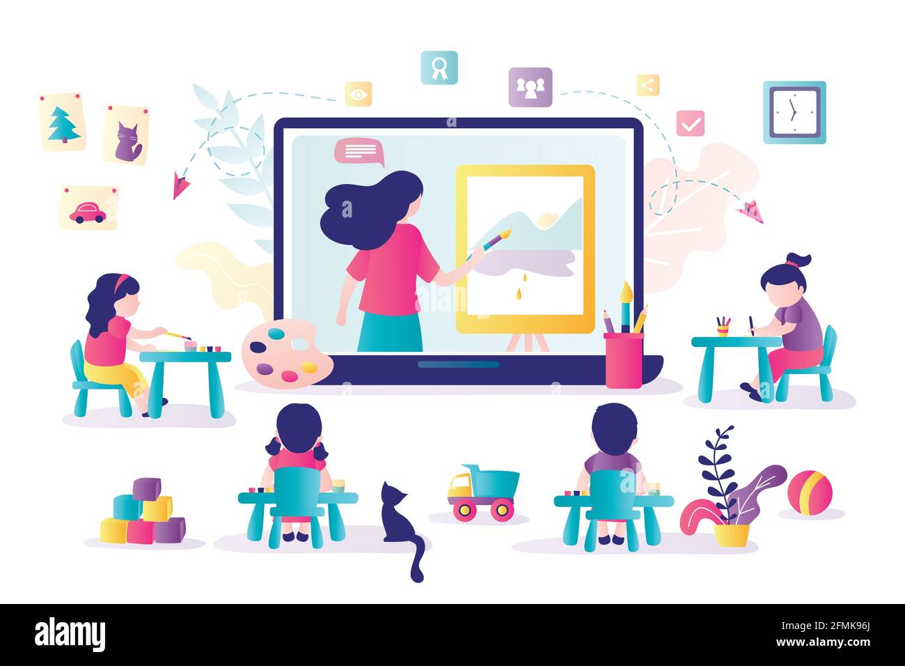 Online Early Childhood Education Courses Free Online Preschool Games Homeschooling E Learning Woman Teacher On Laptop Screen Group Of Preschoolers Stock Vector Image Art Alamy