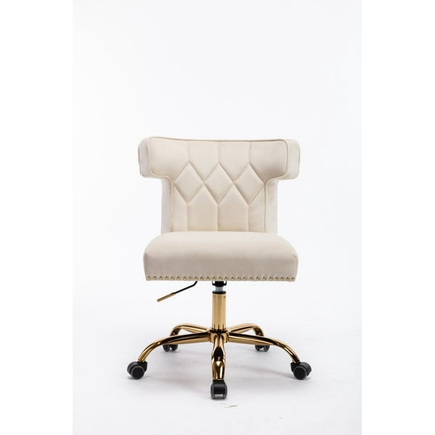 Velvet Home Office Chair Modern Adjustable Swivel Desk Chairs With High Back 360 Degree Castor Gold Wheels For Living Room Bedroom Office Beige Walmart Com